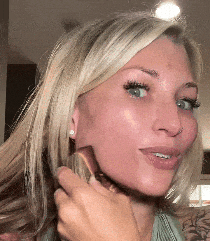 Gently glide the brush along your jawline, cheeks, and forehead using upward and outward strokes. No pressure needed — soft and slow is best.